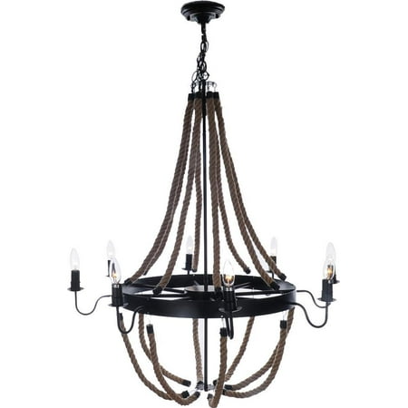 Candle Chandelier 8 Light Iron Hemp Rope New Flameless Hardwire Plugged I Om 406