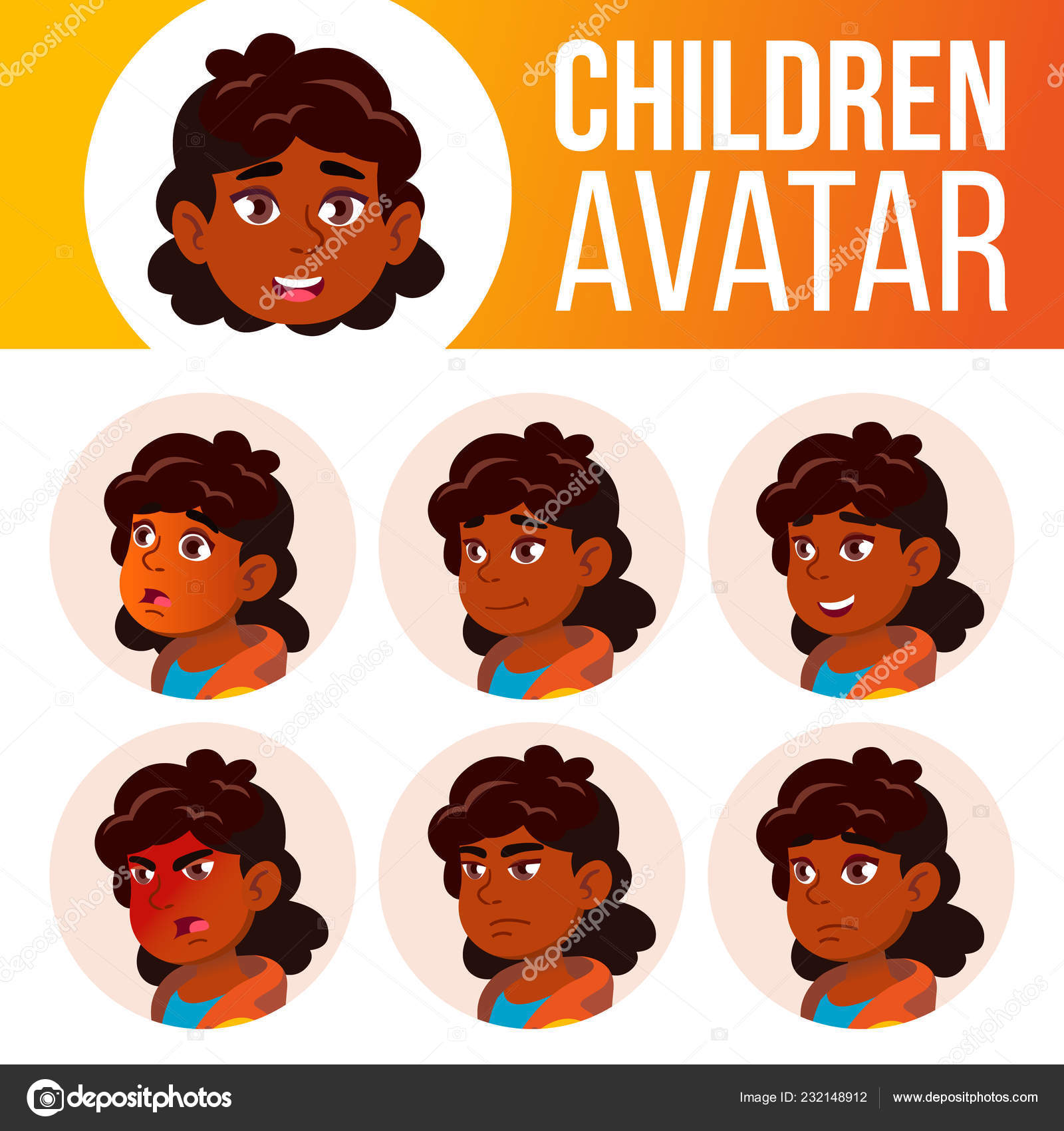 Indian Girl Avatar Set Kid Vector Primary School Hindu