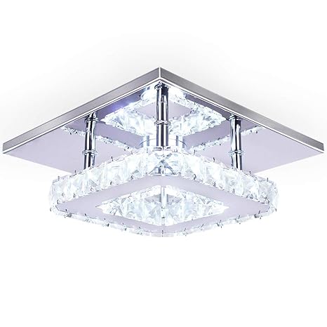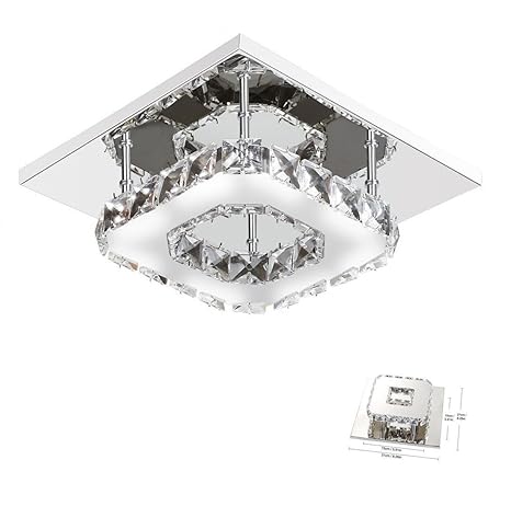 Dixun Modern Crystal Chandelier 7 9 Inches Led Ceiling Light Mini Square Flush Mount Ceiling Light For Bedrooms Dinning Rooms Hallway Cool White 15w