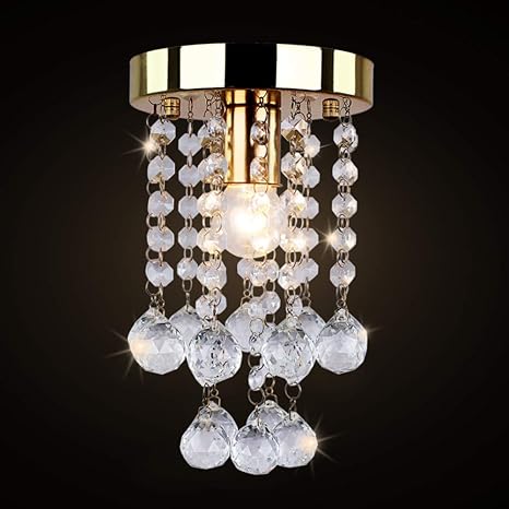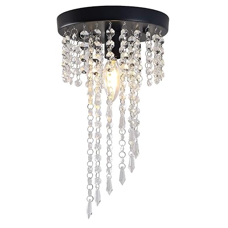 Ancienthome 1 Light Mini Iron Crystal Chandelier Modern Vintage Flush Mount Ceiling Lighting Fixture For Bedroom Hallway Bar Kitchen Bathroom