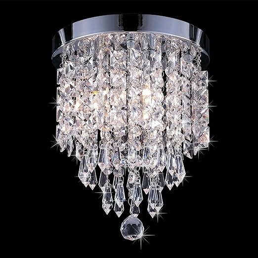 Co Z Mini Crystal Chandelier With 3 Lights Chrome Flush Mount Ceiling Light Fixture With Raindrop Crystals Modern Ceiling Lighting For Hallway