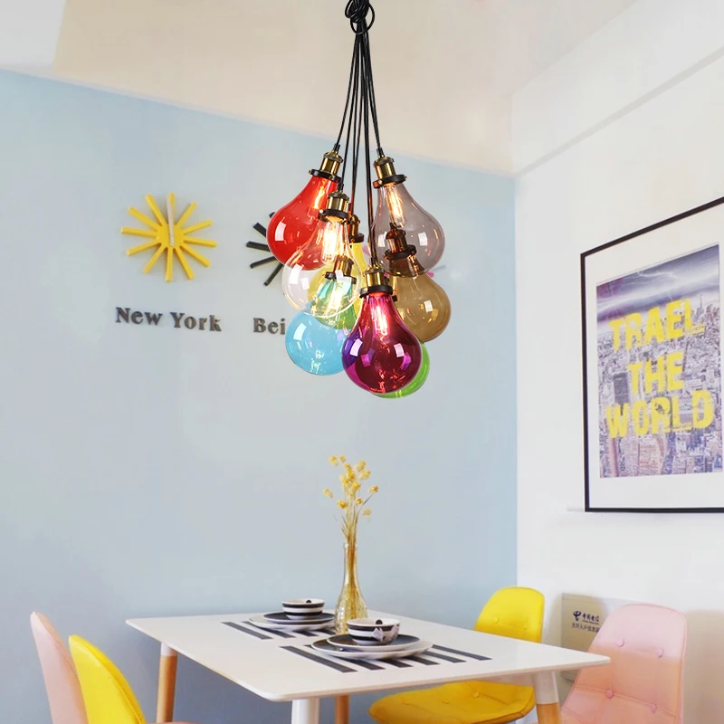 Chandelier Industrial Art Bulb Glass Decoration Light Suspension Fixture New Lighting For Living Room Dinning Room B077 Green Chandelier Multi