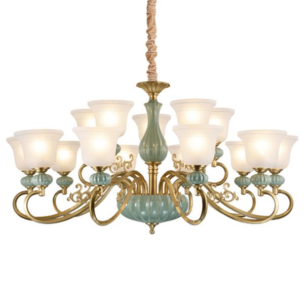 American Pendant Chandelier Lights Elegant Minimalist Hotel Living Room Lamps Retro Copper Ceramic Glass European Led Chandeliers Lighting Multi