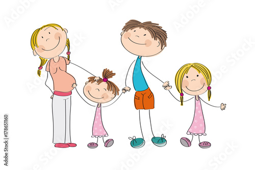 Happy Young Family Original Hand Drawn Illustration Of Mum Dad And Their Children Boy And Girl Acrylic Print