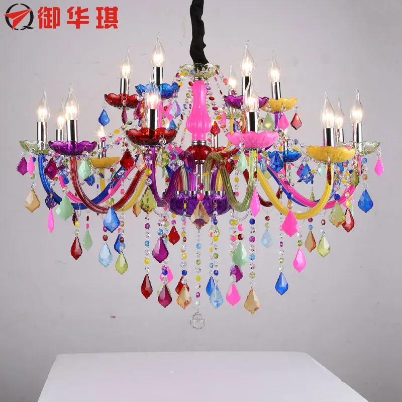 Colorful Crystal Chandelier Bohemia Lustres De Cristal Deco Colourful Kids Pink