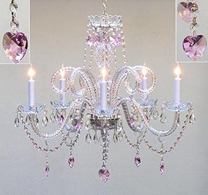 Chandelier Made With Swarovski Crystal Chandelier Lighting With Crystal Pink Hearts H25 X W24 Perfect For Kids And Girls Bedrooms