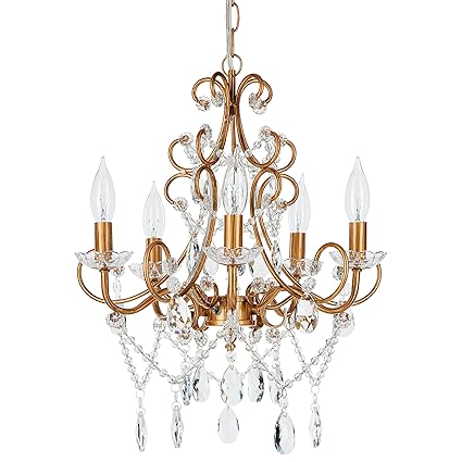 Amalfi Decor 5 Light Led Crystal Beaded Chandelier Mini Wrought Iron K9 Glass Pendant Light Fixture Vintage Nursery Kids Room Dimmable Plug In