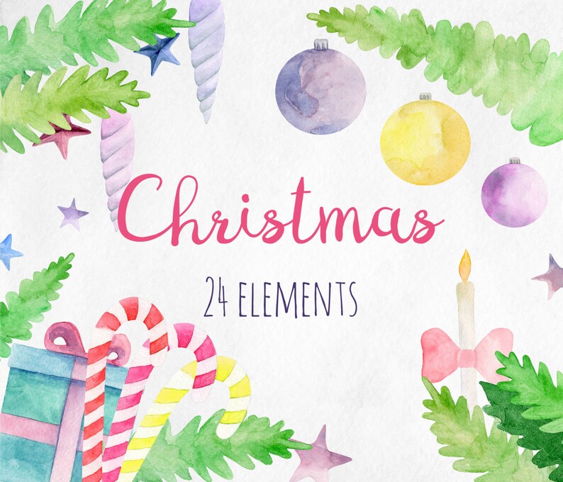 Christmas Clip Art Watercolor New Year Clipart Winter Holiday Xmas Images Merry Christmas Elements Watercolor Decorations Clip Art Holiday