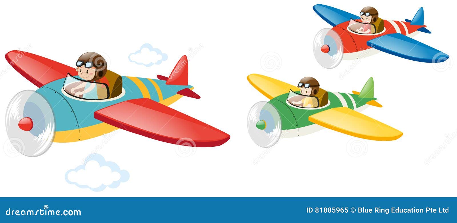 Three Kids Flying Jet Plane Stock Vector Illustration Of