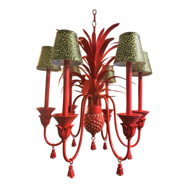 Red Pineapple Chandelier With 6 Lights And Leopard Shades