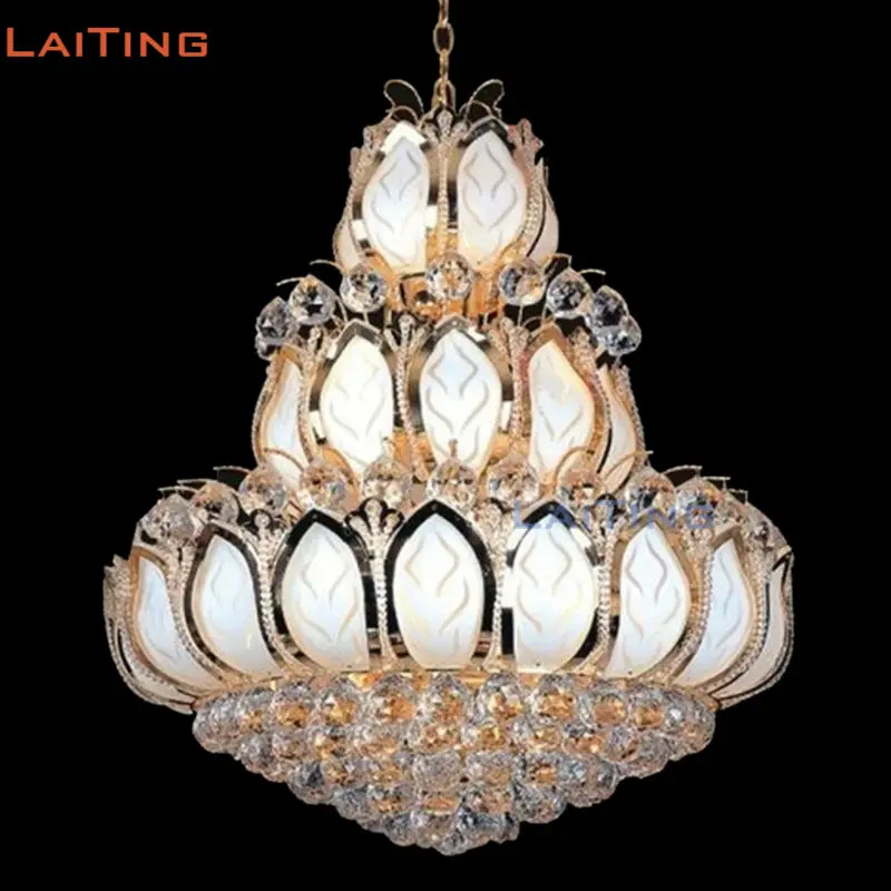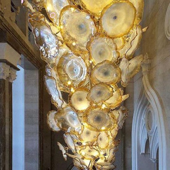 Large Golden Flower Chandelier Light Led Saving Light Source Murano Glass Plates Art Chandelier Lamps Arab Crystal Chandelier