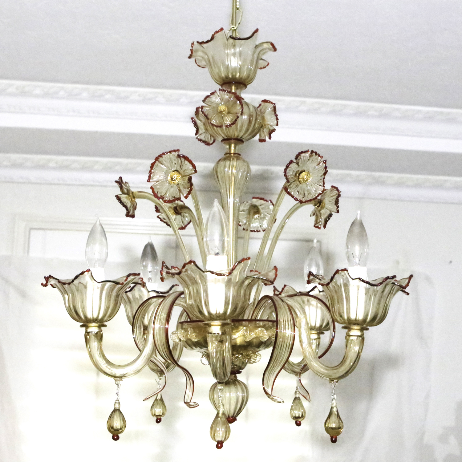 Murano Glass Floral Chandelier 6 Lights Pure Venetian