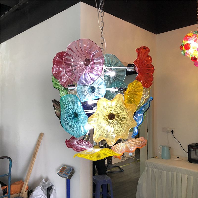 Flower Chandelier Light Dale Chihuly Style Murano Glass Plates Pendant Lamps Multi Color Led Blown Glass Chandelier Lighting For Living Room