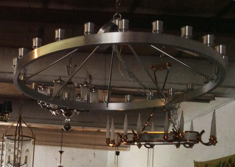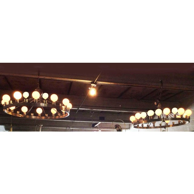 Industrial Round 24 Light Chandeliers A Pair