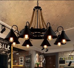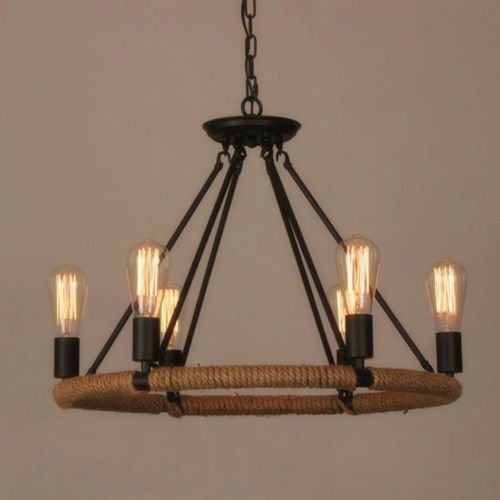 Details About Rustic Iron Modern Vintage 8 Bulb Hemp Rope One Tier Chandelier Ceiling Light Uk