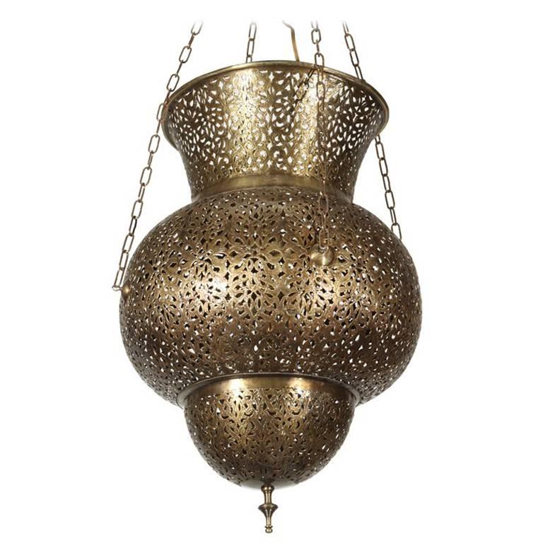 Ball Shaped Large Moroccan Filigree Brass Chandelier Two Available