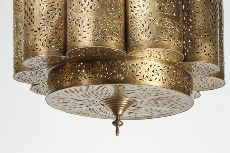 Large Pair Of Pierced Brass Moroccan Chandelier In Alberto