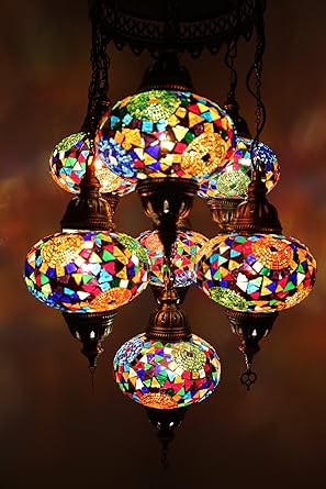 Details About 7 Turkish Handmade Lamp Moroccan Mosaic Chandelier Large Ceiling Hanging Glass