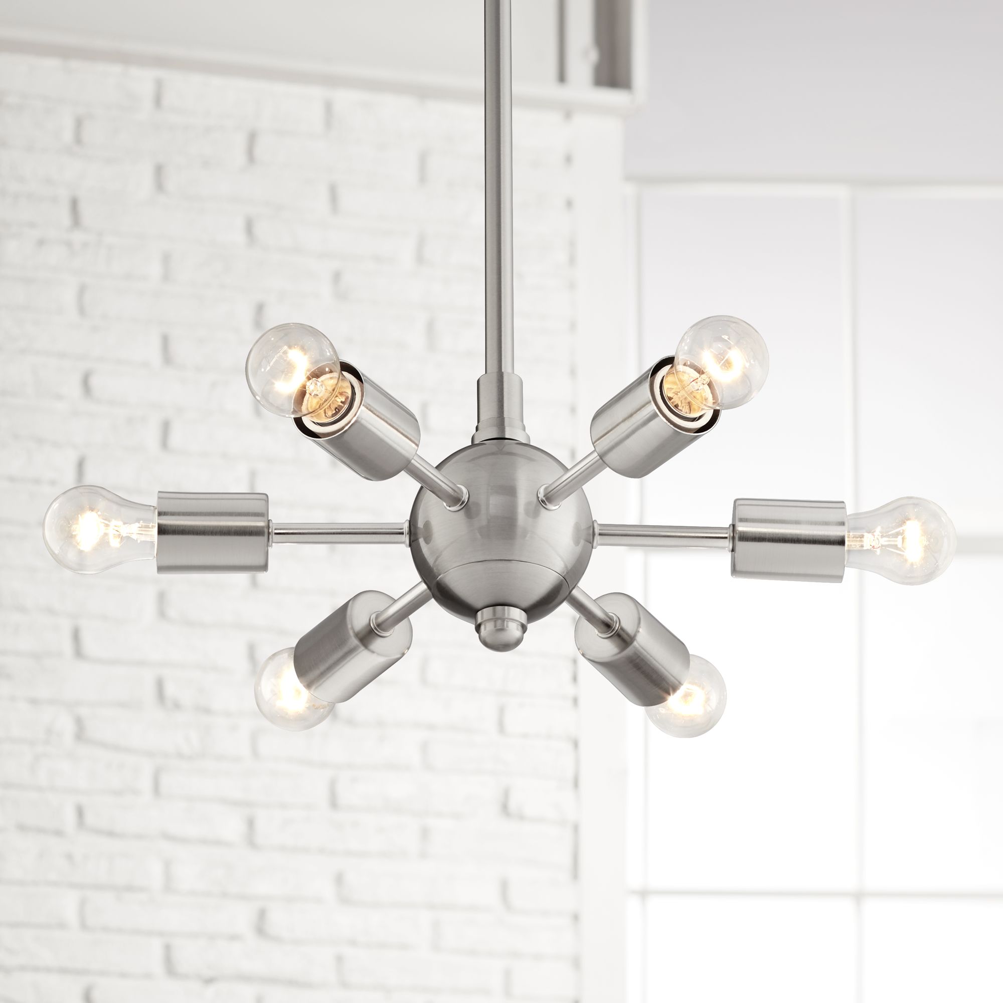 Modern Starburst Sputnik Chandelier 6 Light Brushed Nickel Mini Atomic Fixture Ebay
