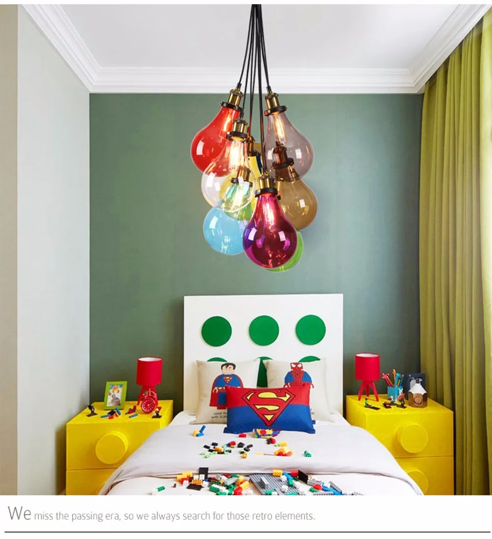 Glass Candle Pendant Light 6 Lights Macaron Loft Multi Color