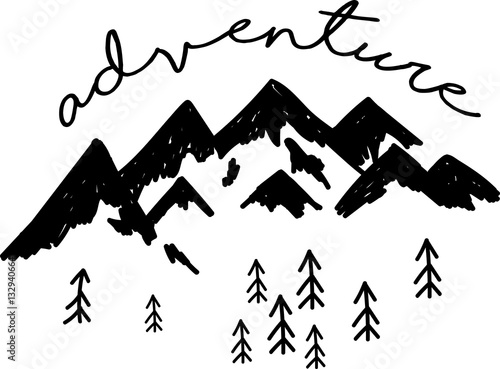 Hand Drawn Vector Illustration Mountains And Calligraphy