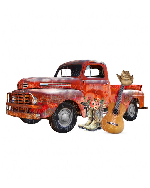 Old Truck Png Vintage Truck Instant Download Sublimation Old Vintage Truck Cowboy Boots Guitar Clipart Country Shirt Old Red Truck Clipart