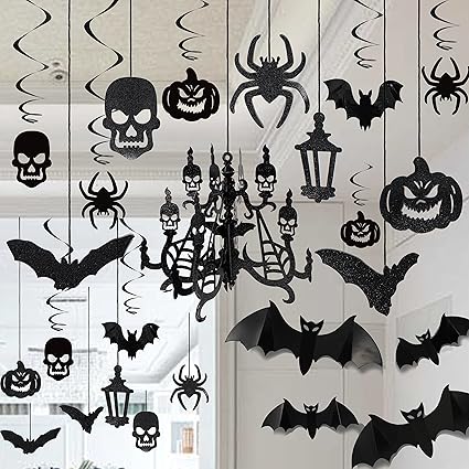 Kuuqa Halloween Hanging Decorations Ceiling Decoration Of Chandelier Bat Crow Spider Skull For Haunted House Decoration Set Of 20
