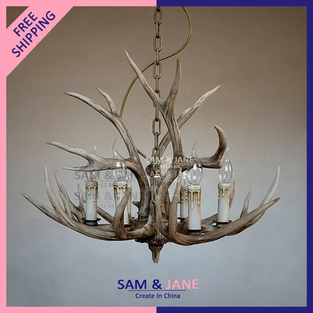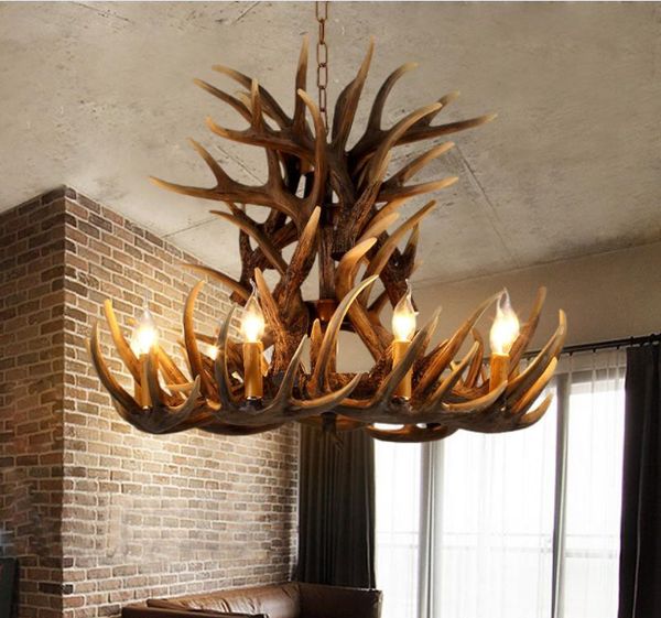 New 6 Head 3 9 Hesd 3 9 Hesd 6 9 Hesd 9 Candle Antler Chandelier American Retro Resin Deer Horn Lamps Home Decoration Lighting Round Pendant Light