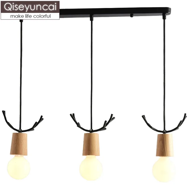 Us 87 4 8 Off Qiseyuncai Nordic Style Simple Deer 3 Head Restaurant Chandelier Creative Log Dining Table Lamps Free Shipping In Pendant Lights From