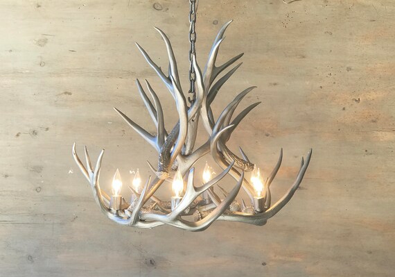 Antler Chandelier Finished In Silver And Hand Crafted Using Naturally Shed Rustic Antlers Free Shipping