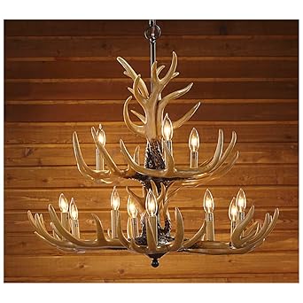 Twelve Light Deer Antler Chandelier Lighting 36in Chain