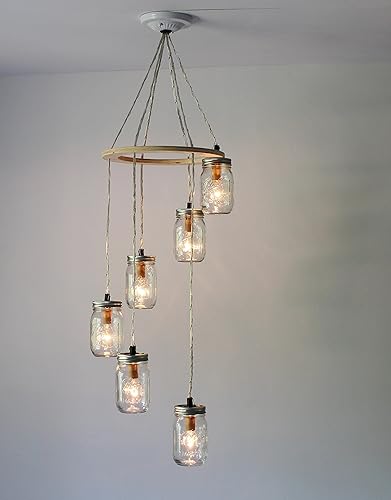 Amazon Com Spiral Mason Jar Chandelier 6 Clear Jars Bulbs