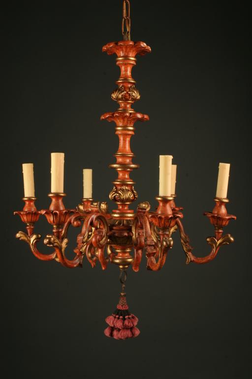 Antique Italian Hand Painted Gilded Wood Chandelier Www