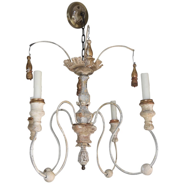 Italian Painted Wood Chandelier With Tassels At 1stdibs