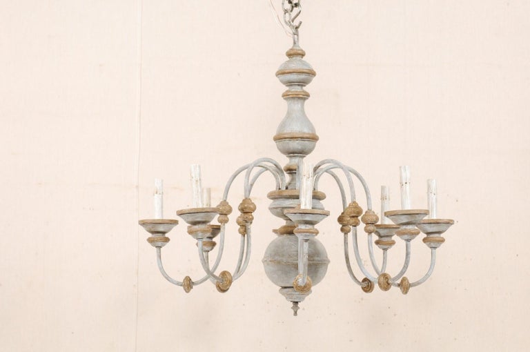 Italian 8 Light Painted Wood Chandelier In Blue Grey Color