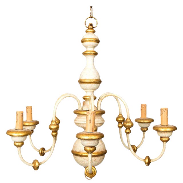 Early 20th Century Vintage Italian Painted Wood Chandelier