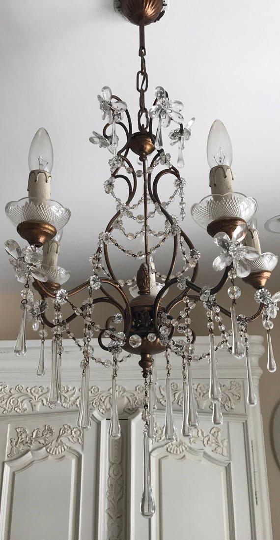 Circa 1900 Italian Crystal And Gild Wood Chandelier