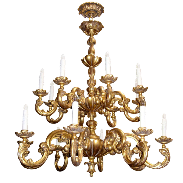 Carved Italian Gilt Wood Sixteen Arm Chandelier By Randy Esada Designs For Prospr