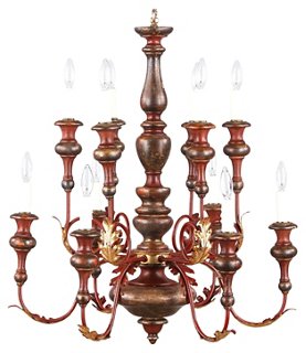 Twelve Light Italian Painted Iron And Wood Chandelier