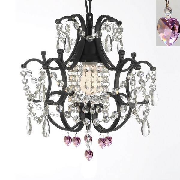 Wrought Iron Crystal Mini Chandelier Lighting With Pink Crystal Hearts H18 X W14