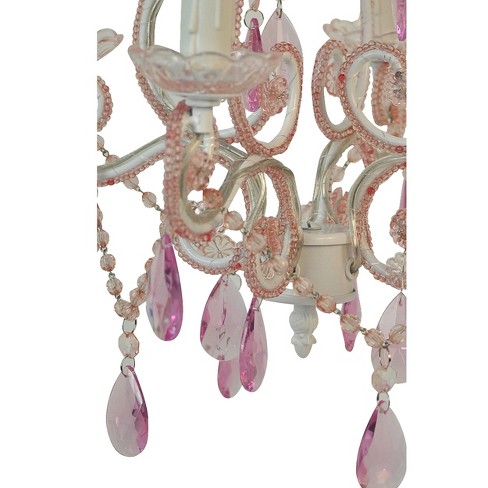 Amalfi Decor 1 Light Mini Crystal Beaded Nursery Chandelier Pink Wrought Iron Frame With Glass Crystals