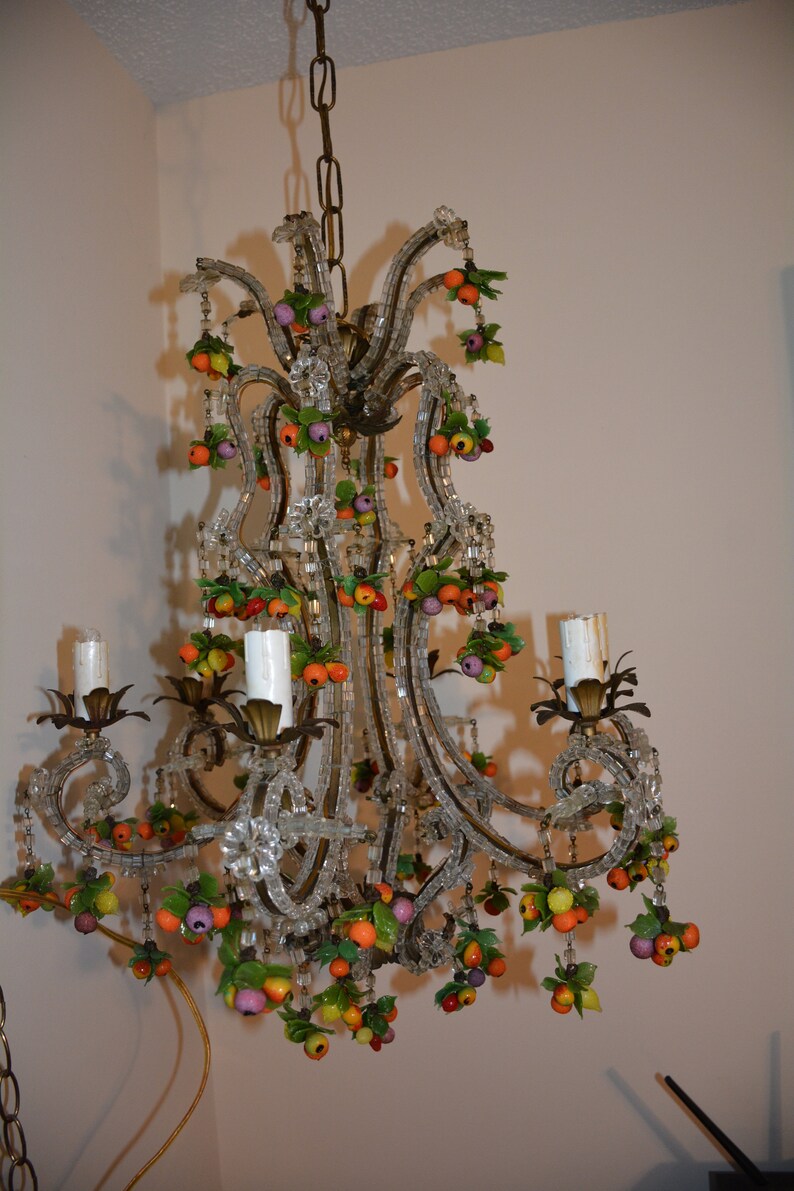 Details About Antique Italian Chandelier With Murano Glass Fruits