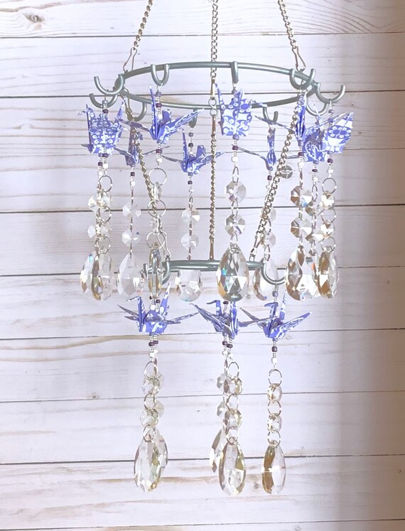 Chandelier Origami Crane Mobile Hanging Decor Prism Paper Nursery Room Decor Babies Room