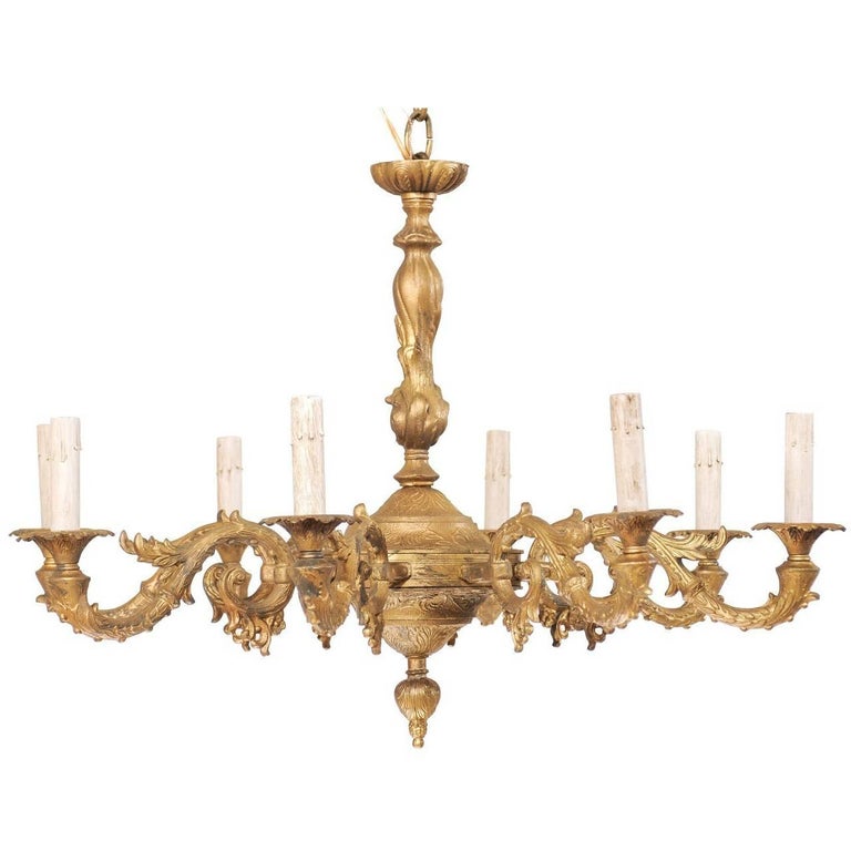 French Eight Light Painted Metal Chandelier Ornate With