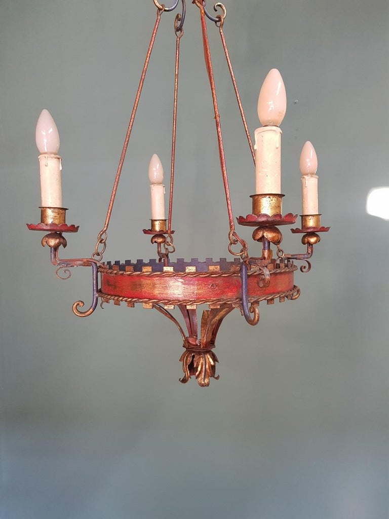 Late 19th Century Painted Metal 4 Light Crown Chandelier