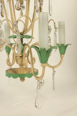 Painted Metal Crystal Chandelier 1950s