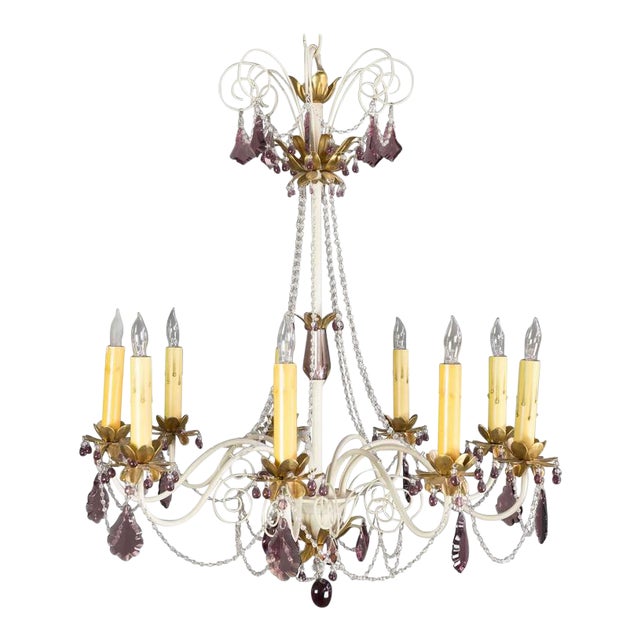 Vintage French Amethyst Chrystal And Painted Metal Chandelier