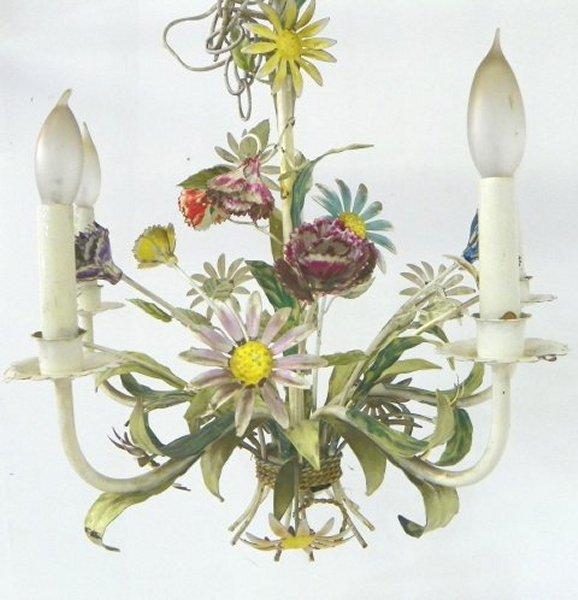 Paint Decorated Floral Metal Chandelier