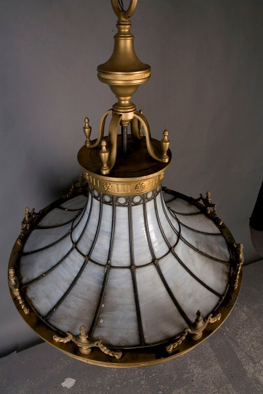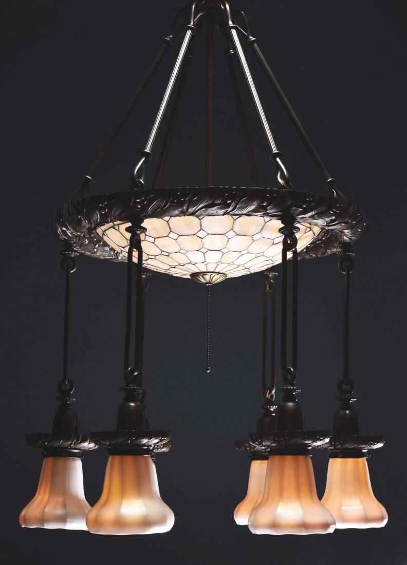 645b Cast Bronze Chandelier Lamp Leaded Glass Canopied Liberty Head Chandelier