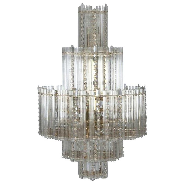 Midcentury Italian Leaded Glass Brass Chandelier Gaetano Sciolari Monumental